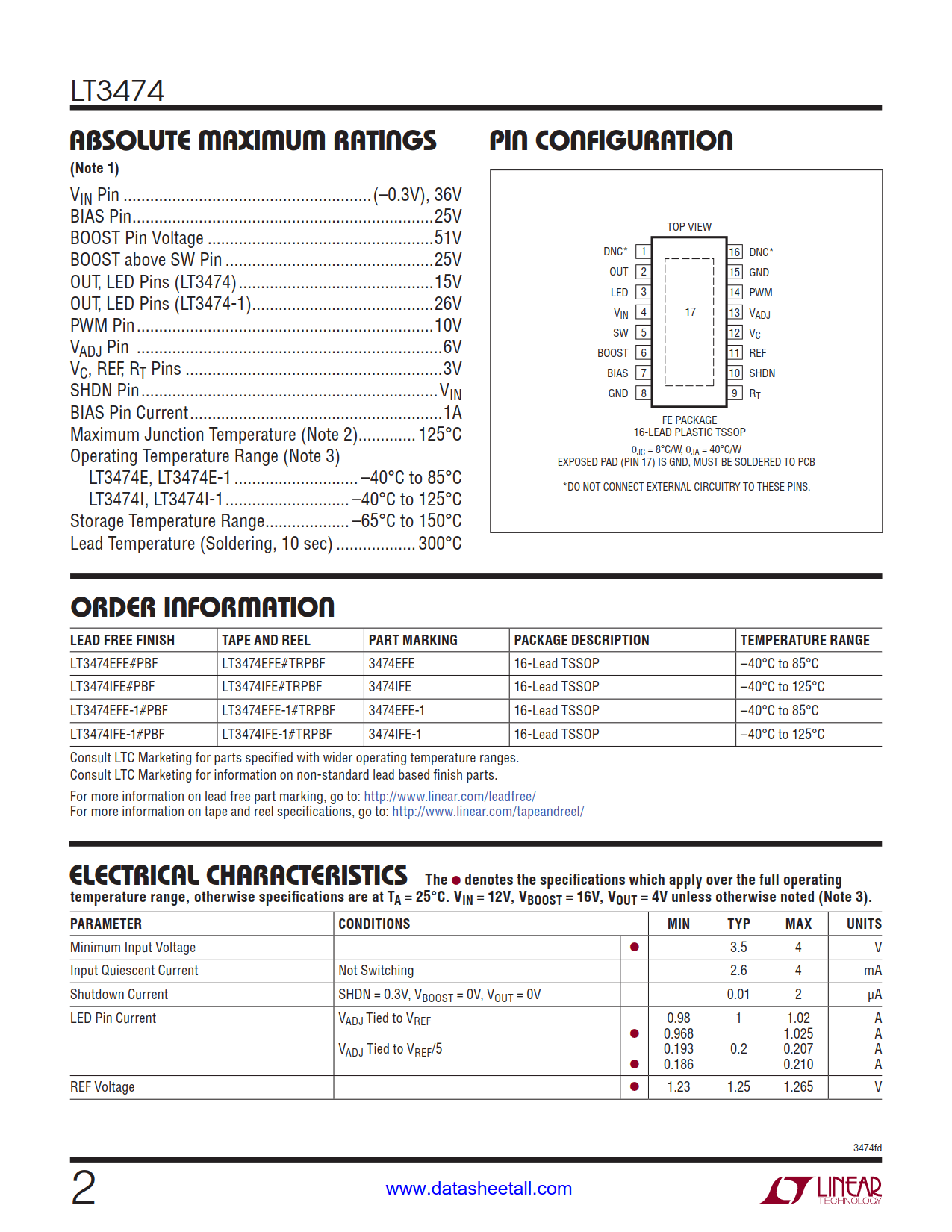 With their wide input range of 4V to 36V, the LT3474 regulate a broad array of power sources, from 5V logic rails to unregulated wall transformers, lead acid batteries and distributed power supplies. A current mode PWM architecture provides fast transient response and cycle-by-cycle current limiting. Frequency foldback and thermal shutdown provide additional protection.