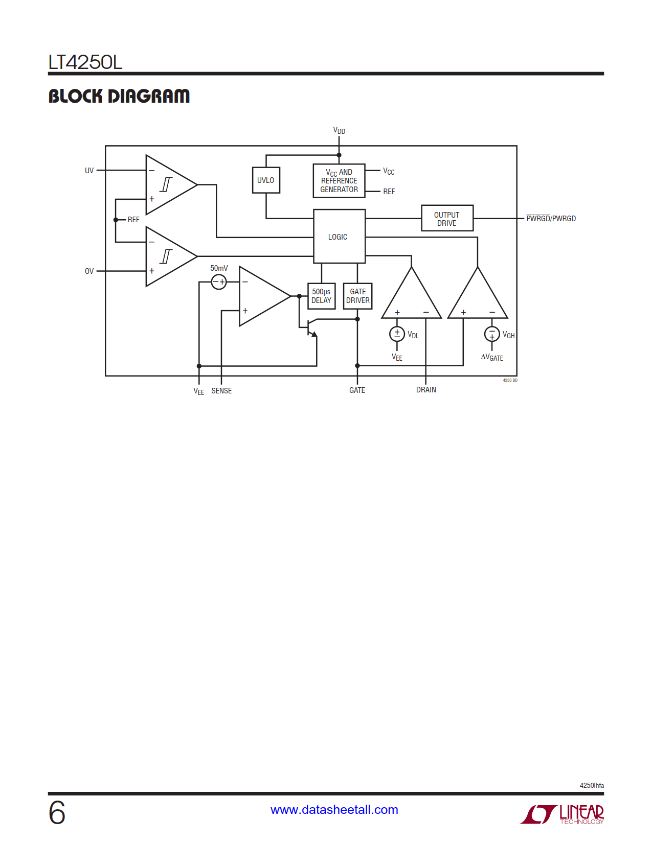 The LT4250L are 8-pin, negative 48V Hot Swap™ controllers that allow a board to be safely inserted and removed from a live backplane. Inrush current is limited to a programmable value by controlling the gate voltage of an external N-channel pass transistor. The pass transistor is turned off if the input voltage is less than the programmable undervoltage threshold or greater than the overvoltage threshold. A programmable current limit protects the system against shorts. After a 500μs timeout the current limit activates the electronic circuit breaker. The PWRGD (LT4250L) signal can be used to directly enable a power module. The LT4250L is designed for modules with a low enable input.