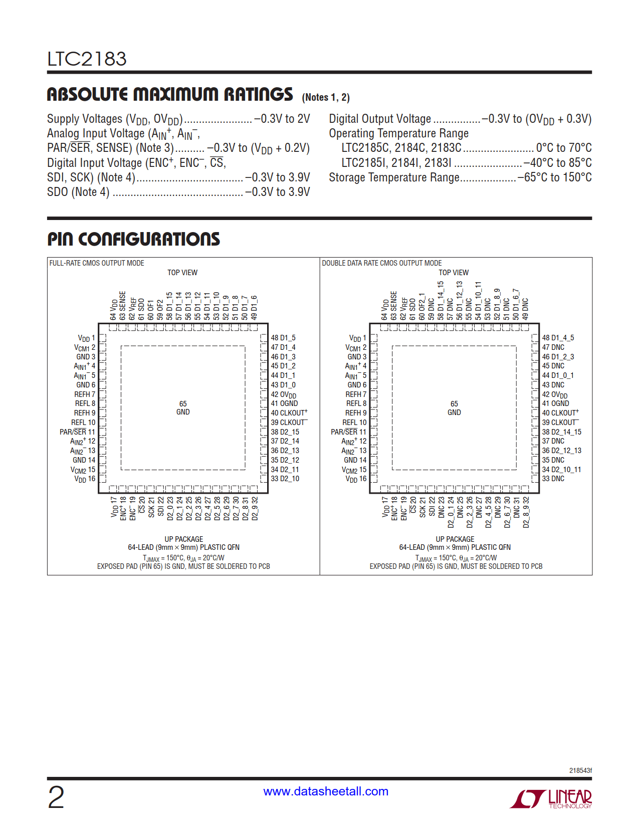 The LTC2183 is two-channel simultaneous sampling 16-bit A/D converters designed for digitizing high frequency, wide dynamic range signals. They are perfect for demanding communications applications with AC performance that includes 76.8dB SNR and 90dB spurious free dynamic range (SFDR). Ultralow jitter of 0.07psRMS allows undersampling of IF frequencies with excellent noise performance.